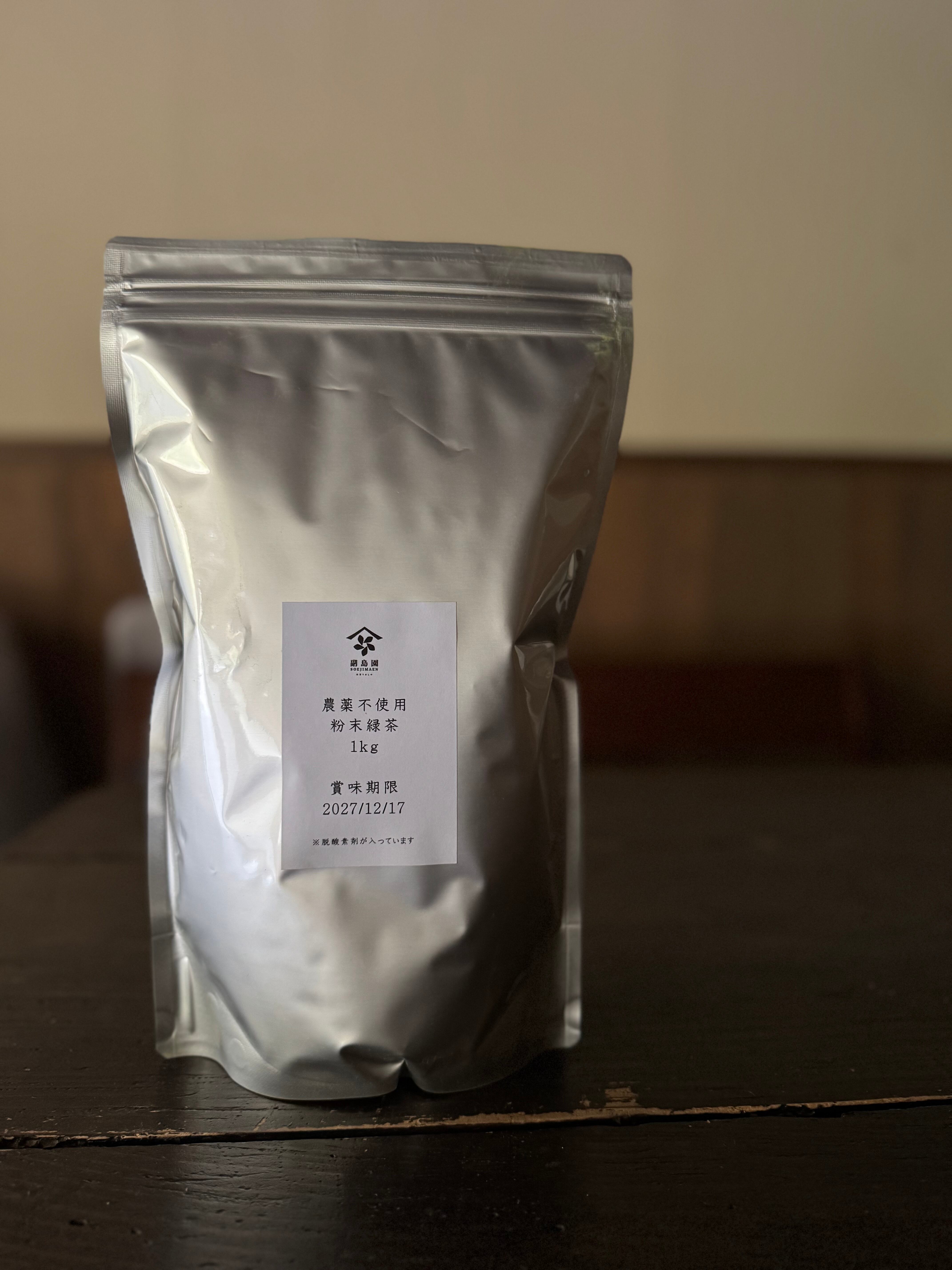 農薬不使用で栽培したお茶をパウダーに加工しました。業務用の1kg入りです。